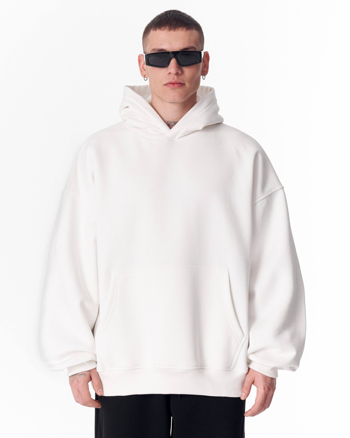 Hoodie Oversize Fit Blanca 100% Algodón Hombre
