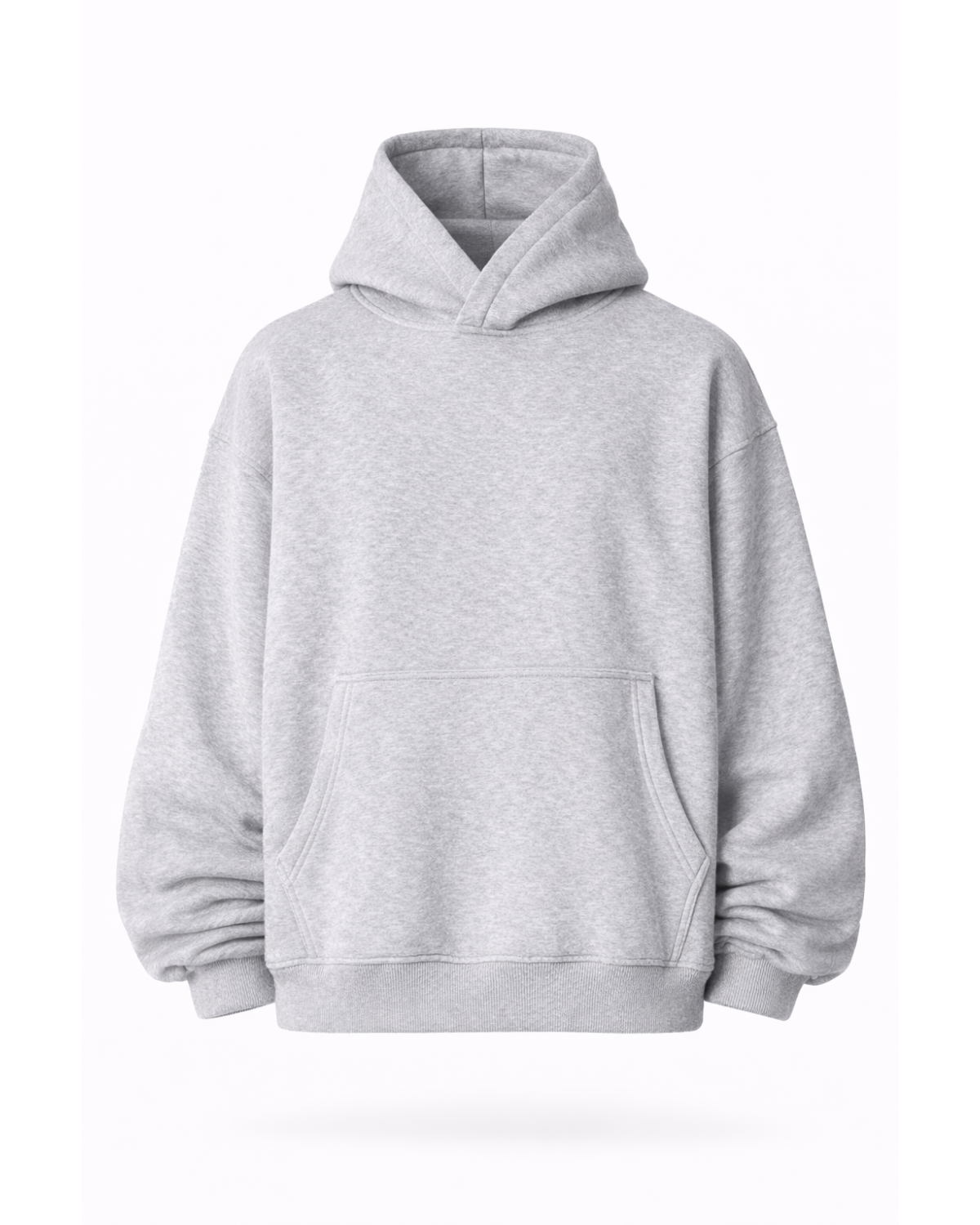 Esta sudadera con capucha gris oversize para mujer está desarrollada para programas escalables de producción de sudaderas personalizadas que requieren superficies preparadas para procesos decorativos industriales.