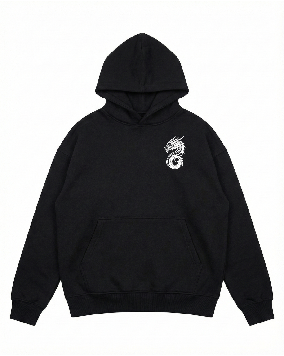 Men's Oversize Black Hoodie With Dragon Print